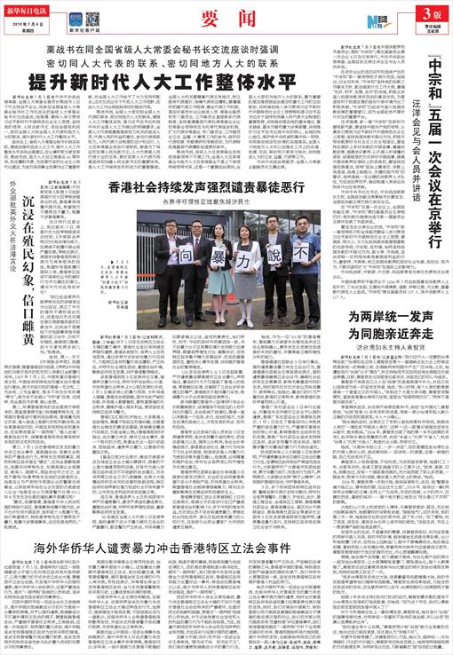 海外华侨华人谴责暴力冲击香港特区立法会事件