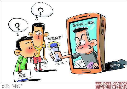 新华社天津7月8日电(记者翟永冠、宋佳、尹思源)在中考体育考试之前,广东一所中学的学生小林很焦虑:“离考试只有几天了,靠训练肯定没法达标。”听说网上卖的一种“体测神药”可以提高成绩,他决定试一试。 “新华视点”记者调查发现,随着中考、高考以及公务员考试的体育测试密集进行,少数身体素质不佳的考生通过吃所谓“神药”提高体测成绩,网上不法商家的兴奋剂生意火热。