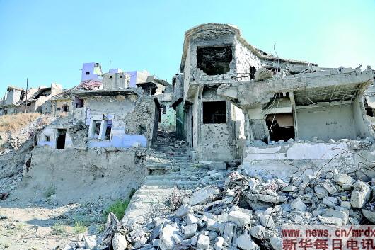 解放两年后摩苏尔老城依旧残垣断壁 |