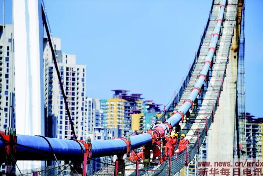 ▲7月9日,工人在重庆鹅公岩轨道专用桥施工现场作业。 新华社记者王全超摄