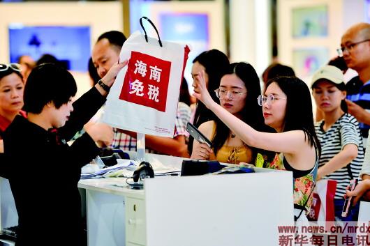 ▲4月13日,顾客在海口日月广场免税店购物。 新华社记者郭程摄