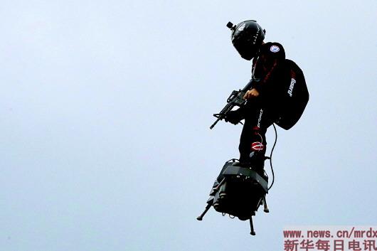 ▲这是7月14日在法国巴黎举行的国庆阅兵仪式上拍摄的操作飞行器的“钢铁侠”。当日,法国在首都巴黎举行国庆阅兵仪式。 新华社发(杰克·陈摄)