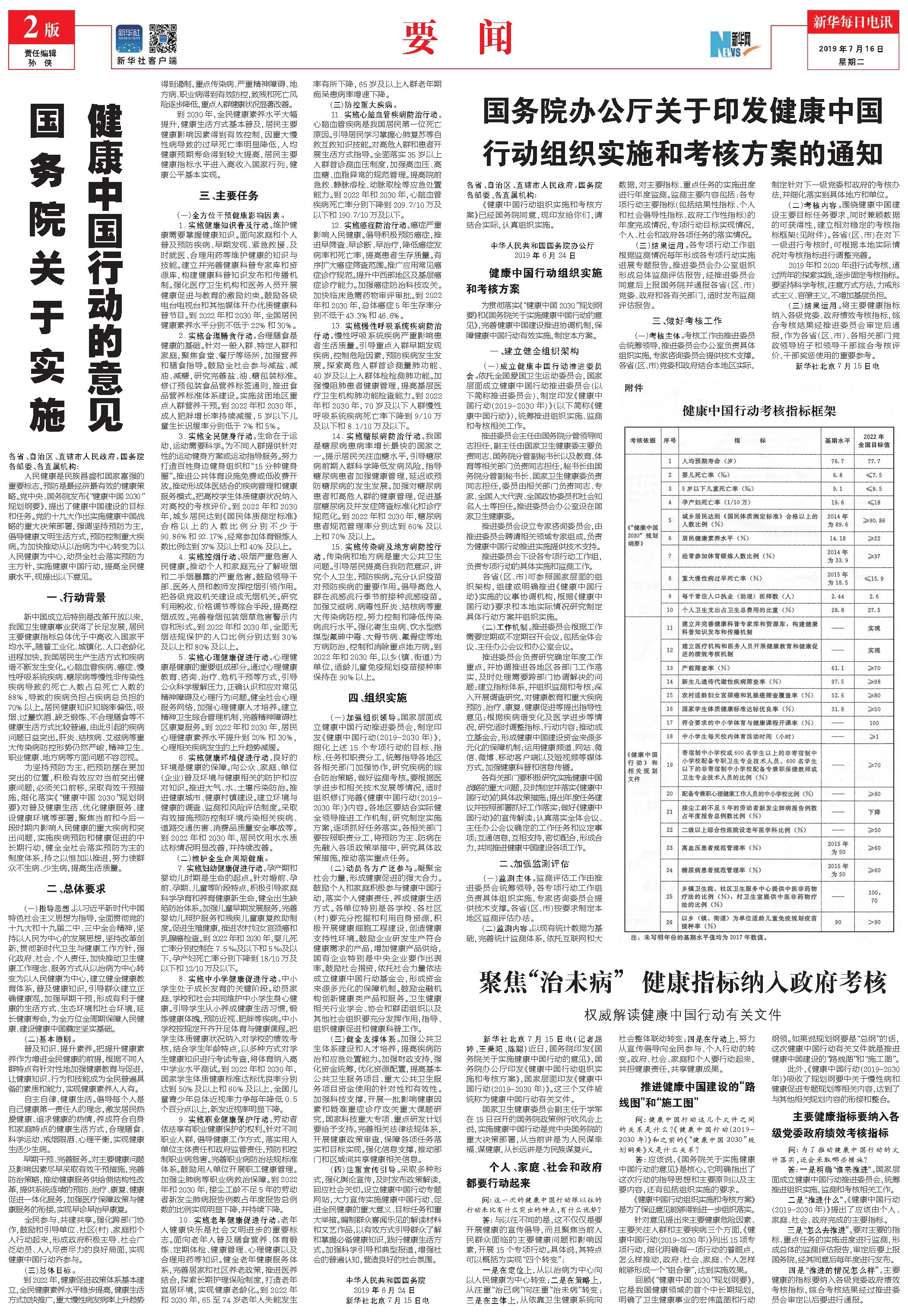 国务院办公厅关于印发健康中国行动组织实施和考核方案的通知