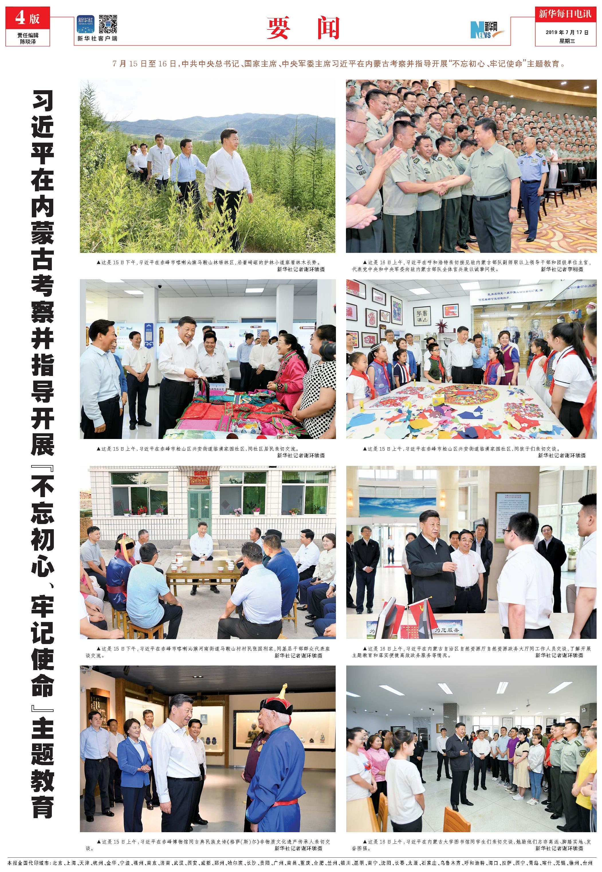 习近平在内蒙古考察并指导开展“不忘初心、牢记使命”主题教育