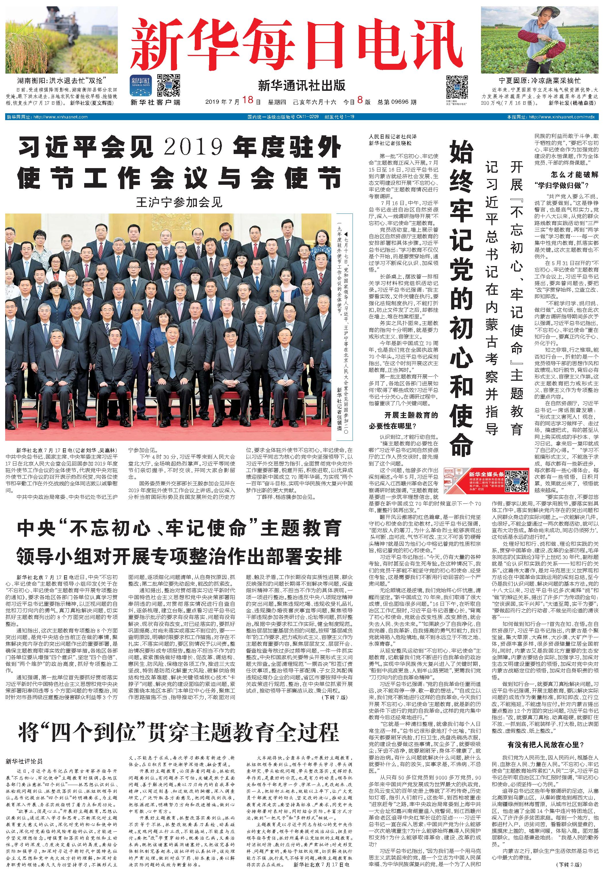 中央“不忘初心、牢记使命”主题教育领导小组对开展专项整治作出部署安排