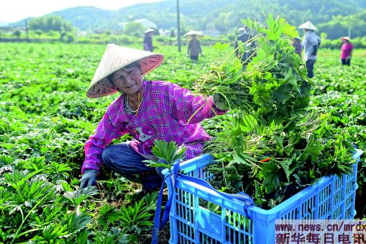 ▲7月20日,浙江诸暨市浬浦镇的益母草种植研发中心基地内450亩益母草陆续开始采收。益母草规模种植促进了当地农民增收。据介绍,益母草一年可收两次,按目前市场收购价估算,每亩年产值约8万元。       新华社记者韩传号摄