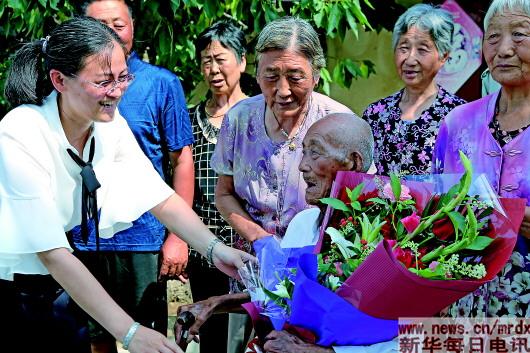 在蓬莱市北沟镇阎家村,张景宪一行见到了98岁的“活烈士”阎寿光。1947年2月,已有三个女儿的阎寿光应征入伍,随后参加了1947年的菏泽战役,因在战斗中受伤没及时回到原部队,遂被列入阵亡名单,并寄送了阵亡通知书。后来,在野战医院病愈的阎寿光辗转回到大部队,于1953年复员回家,如今老人已是五世同堂。