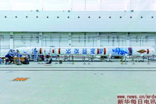 北京星际荣耀空间科技有限公司研制的双曲线一号遥一长安欧尚号运载火箭。 新华社发 |