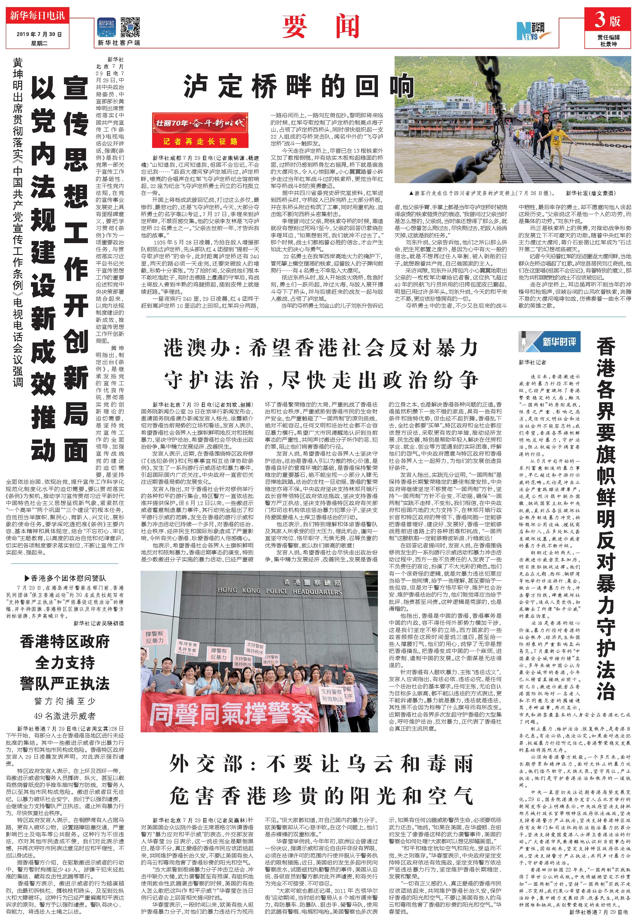 港澳办:希望香港社会反对暴力守护法治,尽快走出政治纷争 (2019年07月30日) |