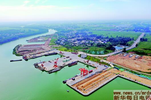 7月31日无人机拍摄的周口中心港码头。    新华社记者李嘉南摄