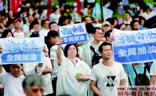 ▲7月20日,在香港添马公园,香港市民举起“守护香港”的标语。当天下午,香港各界举行“守护香港”大型集会,呼吁维护法治、反对暴力。 新华社记者王申摄 新华社北京8月1日电(记者赵博、刘欢)近期香港激进示威者暴力行径不断升级,对香港的法治、社会秩序、经济民生和国际形象造成严重影响。多位内地专家日前受访表示,香港的当务之急是依法惩治暴力违法行为,尽快恢复社会秩序,维护好营商环境,维护好特区繁荣稳定局面。