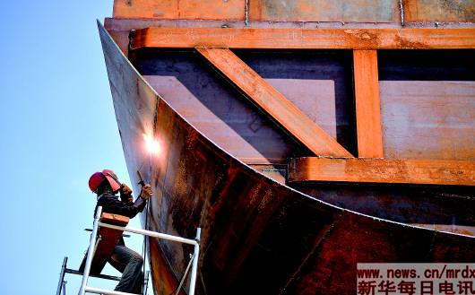 8月1日,工人在淮滨县造船产业集聚区作业。