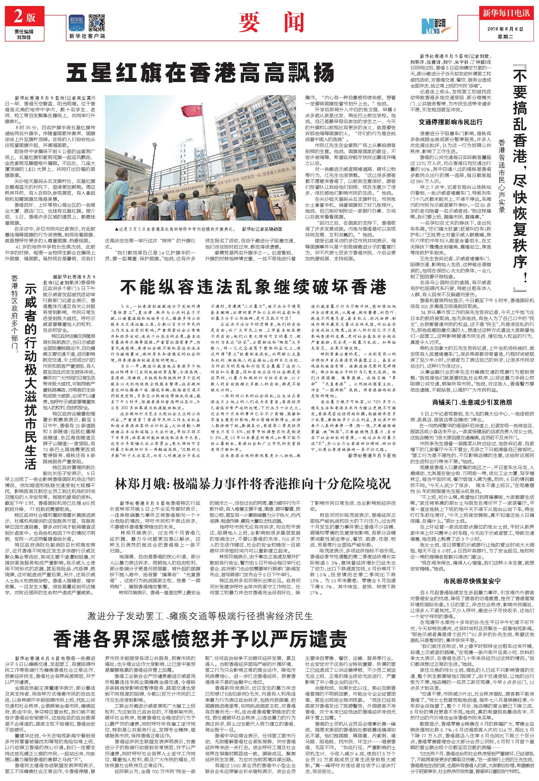 “不要搞乱香港,尽快恢复秩序!”