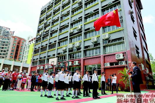 ▲8月11日,香港升旗队总会在新界元朗一家中学举行“家在中华”升旗礼。 新华社记者吴晓初摄