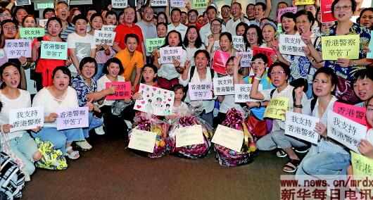 当日,网上自发组织的香港市民,携带慰问品,来到香港北角警署慰问,表达支持警察的心声。新华社记者吴晓初摄