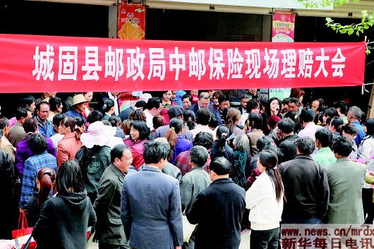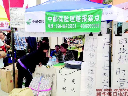 △在四川雅安地震1小时18分后中邮保险率先设立灾区保险理赔服务点 |