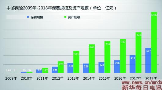 △中邮保险2009年-2018年保费规模及资产规模 |