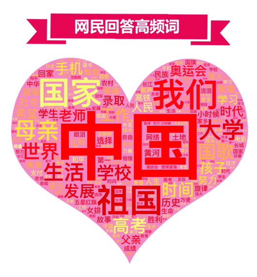 在所有问答的高频词中,有三个词排名最靠前——“我们”“祖国”和“中国”。网友的回答从家长里短到各行各业,但有一种朴素的情感,一直未变。每个人身后都是一个日益强大的中国,每个中国人都是国家发展的见证者和推动者。