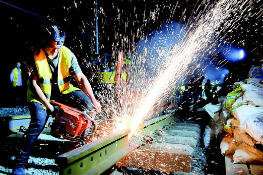 10月18日,由中铁二十四局集团承建的福平铁路联络线接入福州站大拨接封锁施工完工。福平铁路福州站站改工程完成。 新华社记者林善传摄