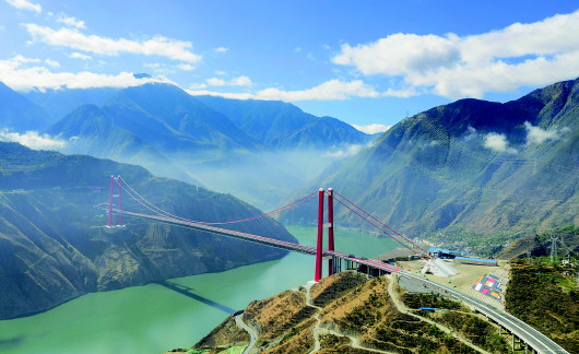 桥横大渡河,天路穿梭时间变短,藏区发展空间变宽,一代代桥梁建设者以顽强拼搏、甘当路石的精神,在川藏线上勾画出一弯又一弯通向幸福的“彩虹”!