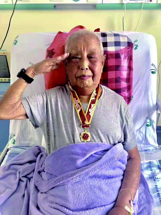 高玉宝在病床上敬军礼。 |