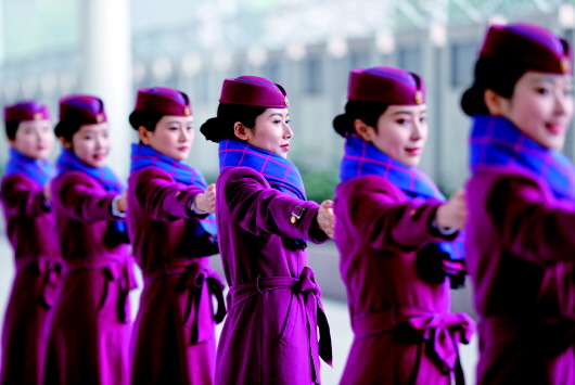 2020年春运即将拉开帷幕,中国铁路成都局集团有限公司重庆客运段动车一队组织动车组乘务人员进行基础业务、妆容礼仪等方面的培训,提升服务水平。