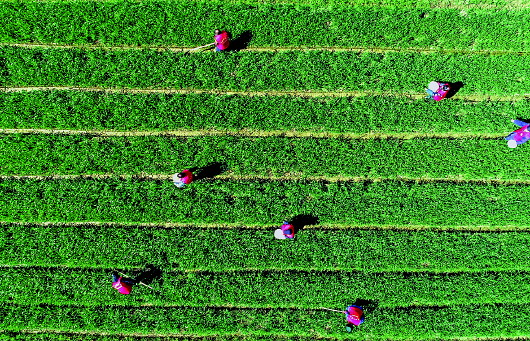 2月17日,党员志愿者帮助农户给小麦锄草施肥。2月初以来,浙江省湖州市长兴县派遣多批农业技术人员下乡,助力春耕备耕。 新华社记者徐昱摄
