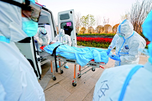 这些生命“摆渡人”日夜在医院与医院之间、留观点与医院之间穿梭不停,在车轮上、担架旁、轮椅边忙碌着,转运新冠肺炎患者。
