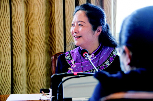 石慧芬代表是贵州省务川仡佬族苗族自治县特殊教育学校教师。26日下午4点,她同贵州团另外8位全国人大代表,在驻地跟国家发改委开了场视频会。