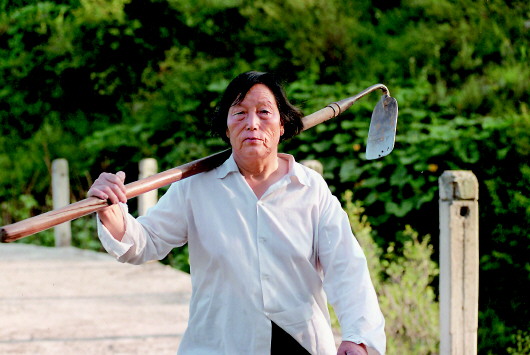 70岁时的申纪兰,扛起锄头仍精神抖擞。 (新华社资料片)