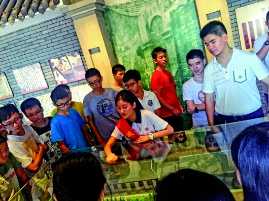 2018年学生志愿讲解员为新生讲解校史馆。武汉中学供图