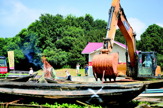 湖南省打击长江流域非法捕捞违法犯罪领导小组28日组织开展了打击非法捕捞第一批集中销毁禁用渔具行动。28日10时许,湖南省14个市州销毁点同时点火,销毁用于非法捕捞的电捕工具1598套、网具3.6万余米、其他渔具3800余套、“三无”船舶239艘。