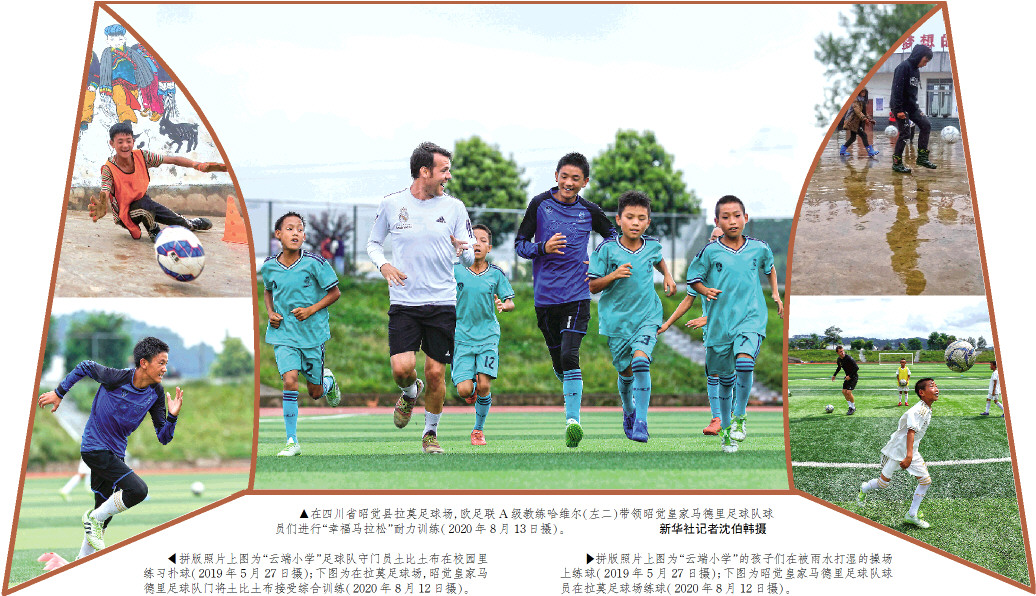 新华社成都8月18日电(记者吴光于)又是一个大凉山的雨季,雨水冲刷着四川省凉山彝族自治州昭觉县城西北角的拉莫足球场。一群个头不一、肤色黝黑的孩子被教练分成了四组进行传球训练。