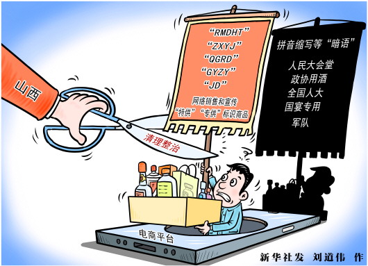 此次专项行动重点整治网络销售的食品(酒类、饮料、保健食品)、瓷器、箱包等热点商品,以“RMDHT”(人民大会堂)、“ZXYJ”(政协用酒)、“QGRD”(全国人大)、“GYZY”(国宴专用)、“JD”(军队)等拼音缩写、汉字谐音等“暗语”方式,在销售商品的包装、标签以及发布的信息、介绍中或商品广告中使用“特供”“专供”及类似内容的行为。