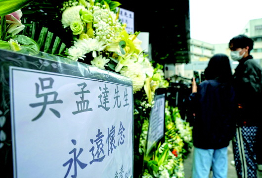 殡仪馆内外排满了各方送来的悼念花圈和花篮,周星驰、刘德华等多位演艺界人士陆续到场,与数百名香港市民共同为吴孟达送行。