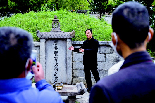 读诗、问史、研究碑文……他在李白墓边渐渐走进了这位“诗仙”的精神世界,又把“诗仙”的故事讲给更多的人。提到李白的故事,谷常新十分熟稔,各种典故、碑文、史料记载信手拈来,甚少错漏。