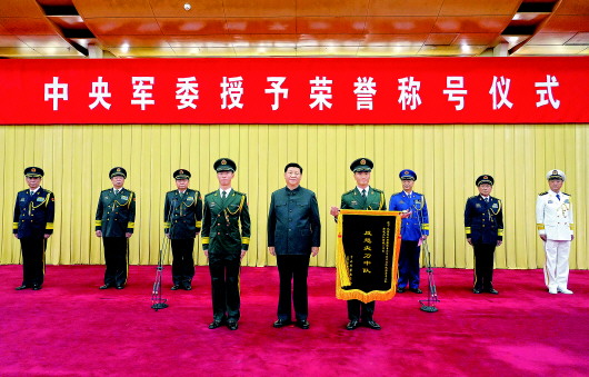 授予武警部队新疆总队某部特战一中队“反恐尖刀中队”荣誉称号 |