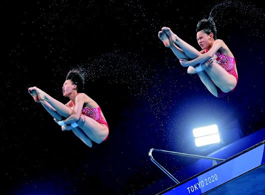7月27日,中国选手陈芋汐/张家齐在比赛中。新华社记者许畅摄 |