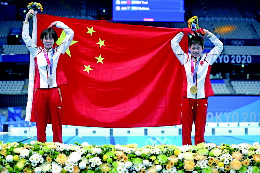 ![]() 8月5日,中国选手全红婵(右)与陈芋汐在颁奖仪式后庆祝。 新华社记者丁旭摄 |