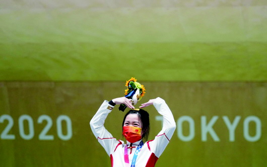 7月24日,在东京奥运会射击女子10米气步枪决赛中,中国选手杨倩夺冠,赢得东京奥运会首枚金牌。 新华社记者鞠焕宗摄 |
