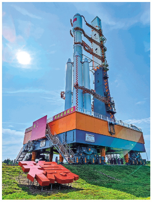 9月16日,天舟三号货运飞船与长征七号遥四运载火箭组合体在转运途中。当日,天舟三号货运飞船船箭组合体垂直转运至发射区,将于近日择机进行发射。新华社发(胡煦劼摄)