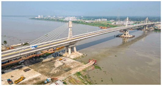 这是十月二十四日在孟加拉国博杜阿卡利拍摄的帕亚拉大桥。由来自中国的龙建路桥股份有限公司承建的孟加拉国帕亚拉大桥日前正式通车。新华社发 |