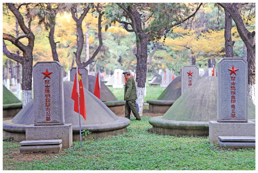 当日,为纪念中国人民志愿军抗美援朝出国作战71周年,志愿军老战士代表和烈士家属代表来到沈阳抗美援朝烈士陵园祭奠英烈和亲人,表达思念之情。 新华社记者杨青摄