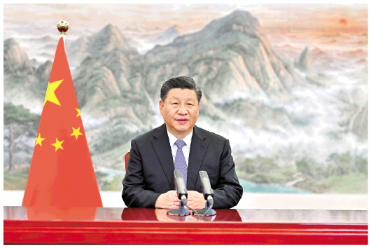 11月4日晚,国家主席习近平以视频方式出席第四届中国国际进口博览会开幕式并发表题为《让开放的春风温暖世界》的主旨演讲。 新华社记者李学仁摄 |