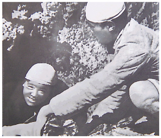 和战友一起烧炭的张思德(左)(资料照片)。 新华社发 |