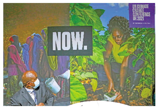 这是11月9日在英国格拉斯哥拍摄的联合国气候变化大会会场内的一处宣传海报。《联合国气候变化框架公约》第26次缔约方大会在英国格拉斯哥继续进行。 新华社记者韩岩摄