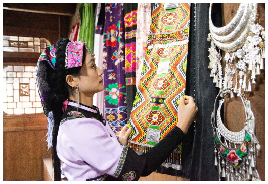 ▲1月7日,田剑英在捞车村的个人工作室内整理土家族传统服装。 新华社记者柳王敏摄