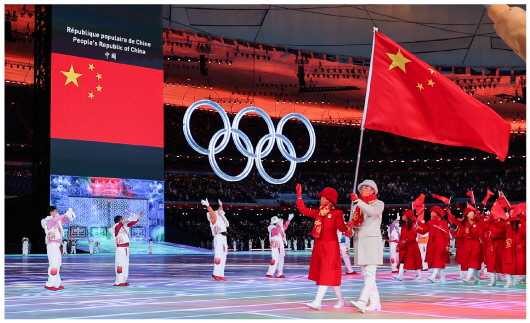 2月4日晚,北京冬奥会开幕式在国家体育场举行。这是中国代表团在开幕式上入场。
