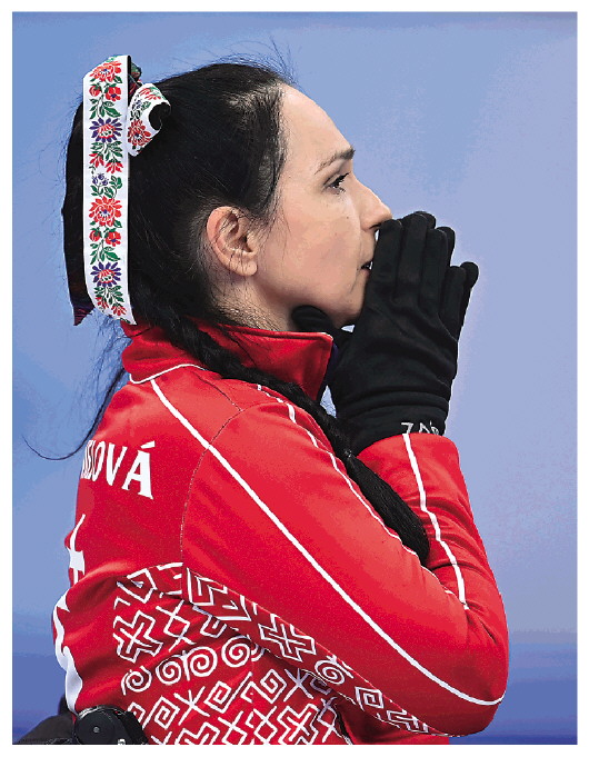 ▲斯洛伐克队选手莫妮卡·孔克洛娃在轮椅冰壶循环赛中(3月5日摄)。