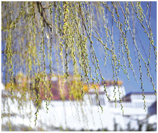 ▲这是3月20日在布达拉宫广场拍摄的柳枝。当日是二十四节气中的春分,拉萨气温逐渐转暖,人们走向户外,感受春天。 新华社记者觉果摄